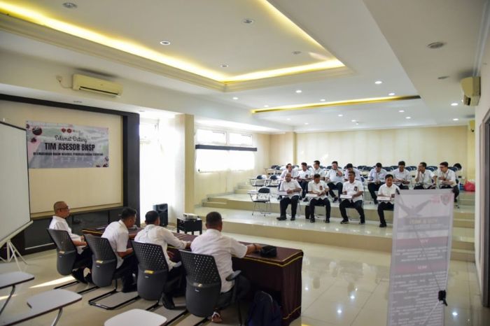 Ketua Tim Visitasi BNSP, Ade Syaekudin, yang juga menjabat sebagai Koordinator Lisensi BNSP, memimpin audit secara rinci didampingi oleh anggota tim, Edi Siswanto.