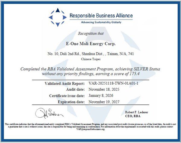 TAIPEI, 17 Maret 2026 /PRNewswire/ — Molicel mengumumkan, pabriknya resmi meraih Status Silver dari Responsible Business Alliance (RBA). Pengakuan bergengsi ini menjadi perkembangan penting dalam perjalanan Molicel menuju keberlanjutan global, serta menjadi pemimpin industri yang membangun rantai pasok yang etis.
