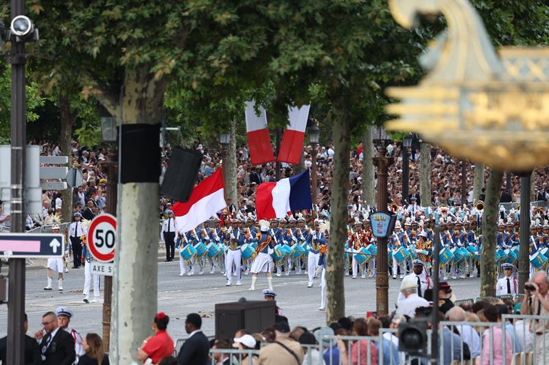 Dalam laporan media France 24, disebutkan bahwa lebih dari 450 tentara Indonesia berpartisipasi dalam parade, dan mereka membuka jalannya upacara setelah iring-iringan udara dari Patrouille de France. Kehadiran Indonesia sebagai negara kehormatan dipandang sebagai simbol penguatan kerja sama strategis antara kedua negara, khususnya dalam kerangka Indo-Pasifik.